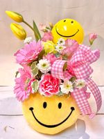■使用花材 : チューリップ・ガーベラ・スプレーカーネーション・季節の小花・スマイルバルーン・チェックリボン