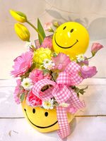 〜ふんわりスマイルポットにスマイルバルーン♪ ダブルスマイルで贈っても贈られてもスマイルになれるHAPPYなフラワーギフトです(*^_^*)〜
