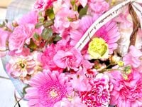 〜やさしいピンクの花々を重ねて、春のぬくもりをバスケットに閉じ込めました。贈る方の想いが、そっと伝わるアレンジメントです。〜