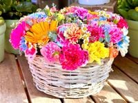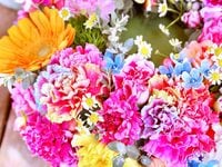 ■使用花材 : レインボーカーネーション・スプレーカーネーション・ガーベラ・ブルースター・季節の小花・季節のグリーン