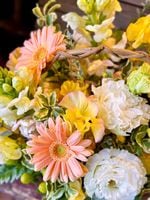 ■使用花材 : ガーベラ・トルコキキョウ・スイートピー・季節の小花・季節のグリーン